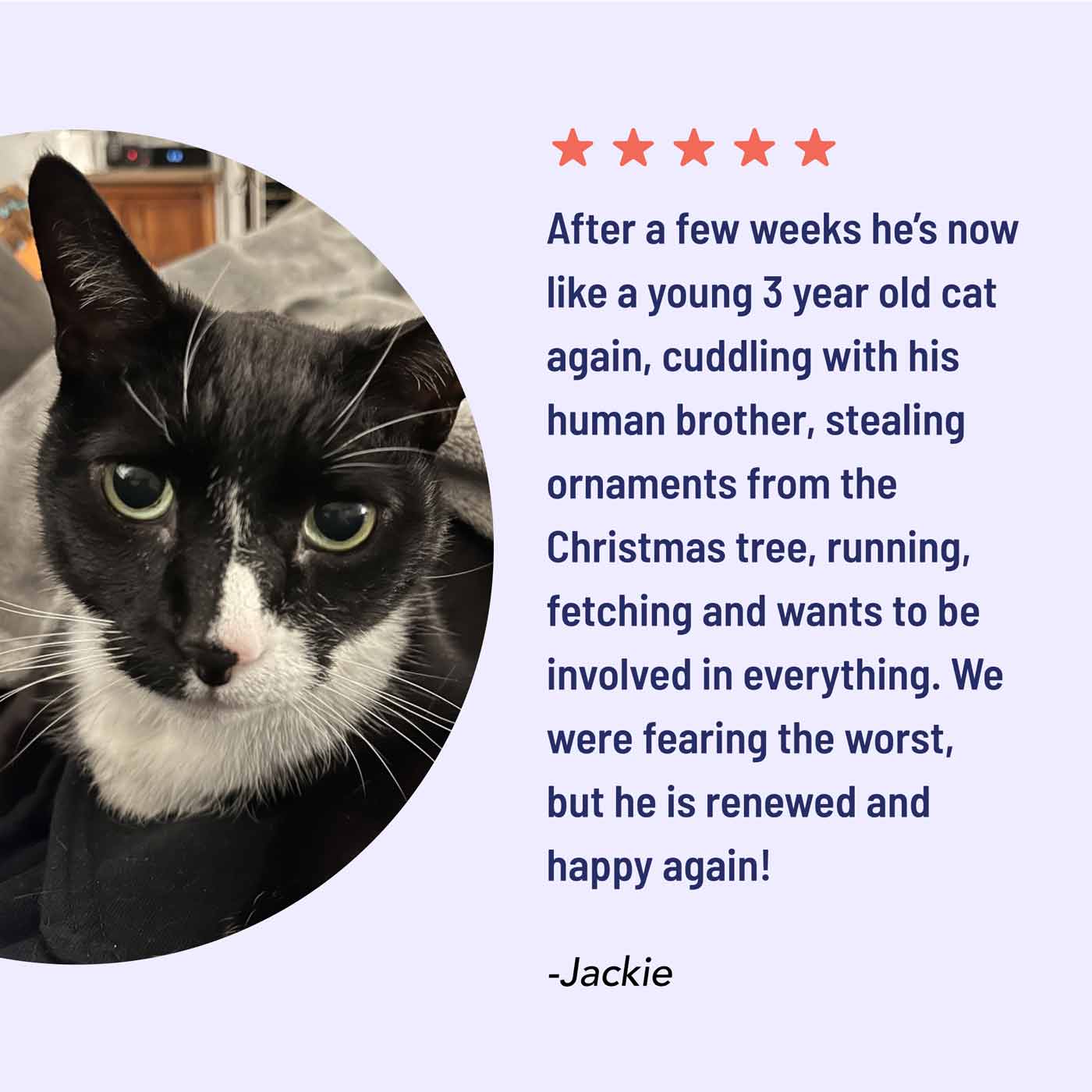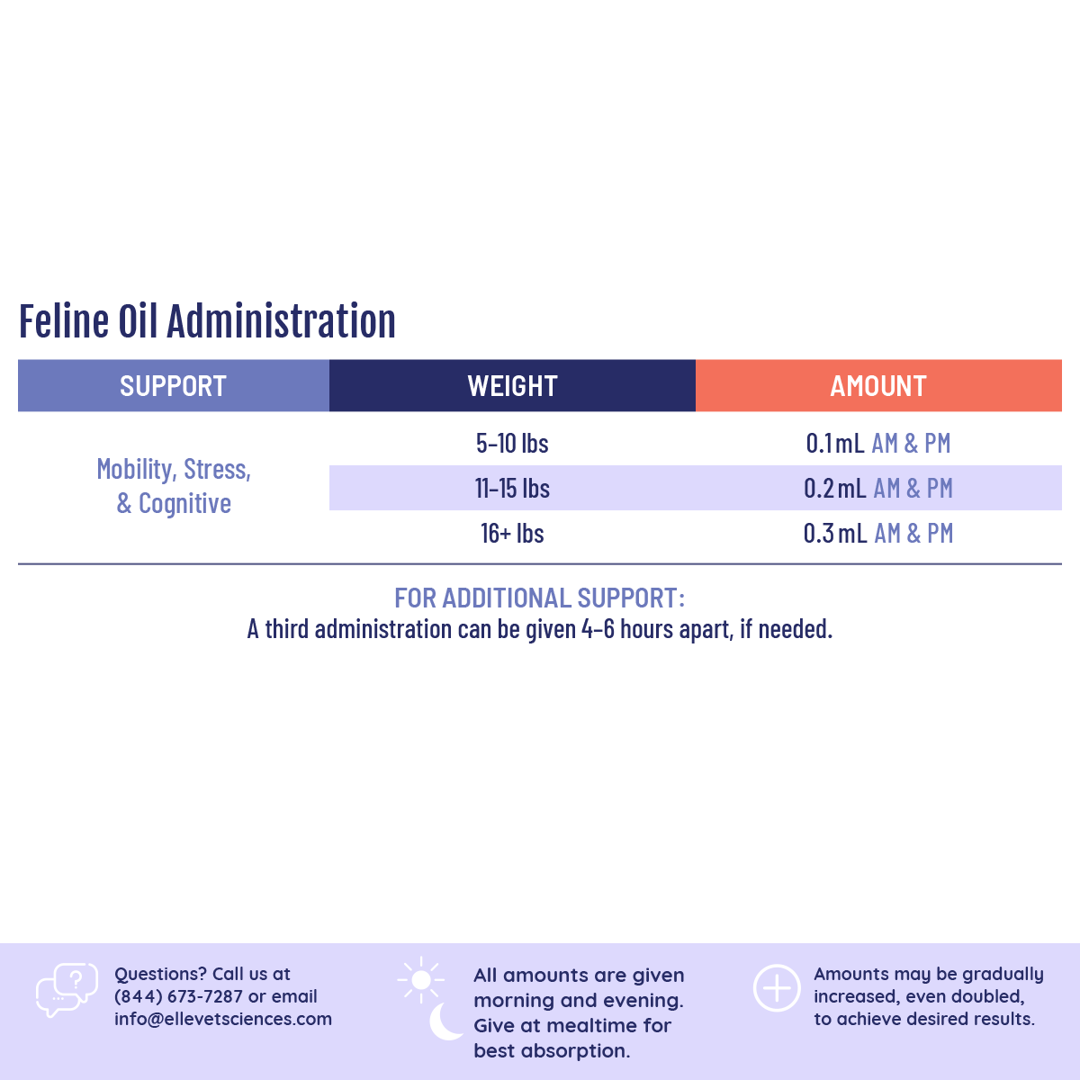 Star PlaceholderElleVet Feline Oil is safe and effective, and comes with feline-specific instructions so your cat gets the support they need.